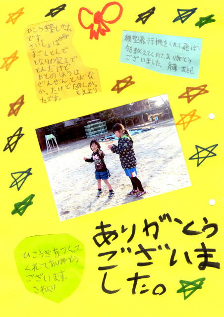「なかよし教室」から模型飛行機教室がお礼の綴り本を頂きました♪