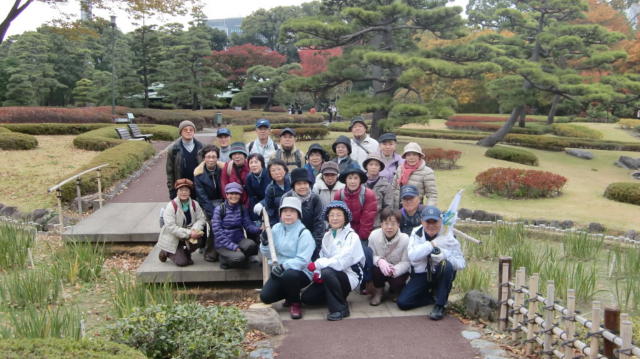 ウォーキング教室では「公開ウォーク」を開催しており、昨春の「節分草ハイク」に続き、今回は「皇居東御苑ウォーク」を実施しました。天候にも恵まれ、会員19名・一般6名(計25名)に参加頂きました。