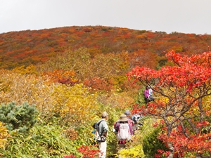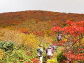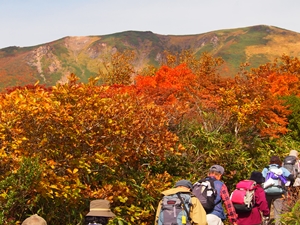 両日とも錦秋の楽しい山登りで、特に栗駒山は紅葉の最盛期でみなさん紅葉に染まり